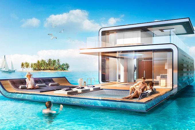 O condomínio chamado The Floating Seahorse tem casas totalmente personalizadas. Com mais de um andar, as obras flutuantes possuem cômodos que ficam submersos na água. Graças à resistência do vidro, os moradores podem ter no seu quintal um jardim de corais com várias espécies marinhas. Os preços das casas variam a partir de 2,8 milhões de dólares (R$11,4 milhões).