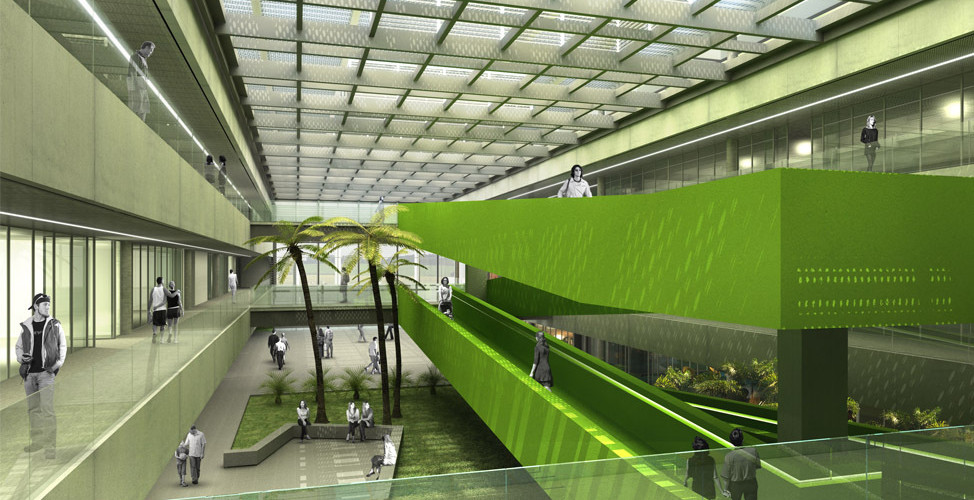 O projeto, concluído neste ano, está localizado próximo ao Aeroporto Internacional de Guarulhos – SP. Desenvolvido pelo escritório Dal Pian Arquitetos Associados, foi idealizado em torno de uma grande praça de convivência.