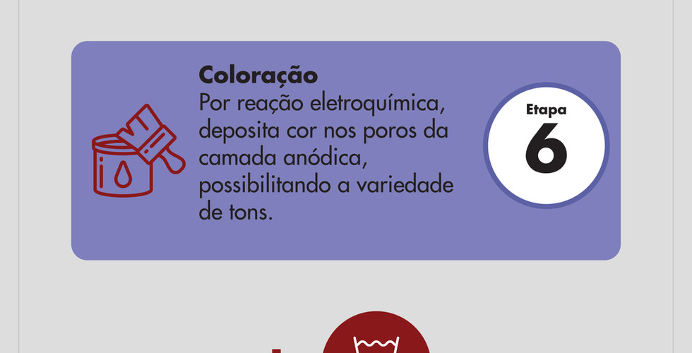 Durante o procedimento, os perfis são imersos em uma solução ácida, sob condições controladas, por onde passa uma corrente elétrica produzindo a película superficial, extremamente dura, estável e resistente à corrosão.