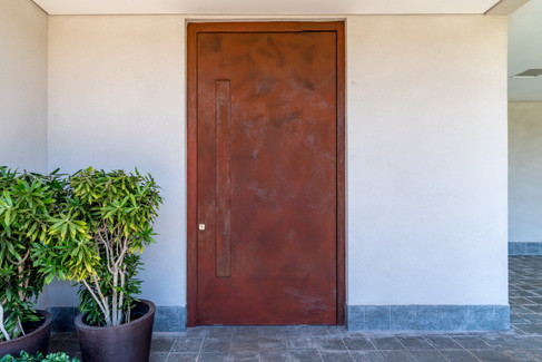 Quando se trata de portas instaladas no muro da casa e que dão diretamente para a rua, Isabella recomenda as de ferro. “Elas combinam resistência, segurança e preço acessível. Mas exigem que a pintura seja refeita com frequência para garantir que não enferrujem, principalmente quando expostas à água. Como são pesadas, vale investir em boas ferragens e dobradiças, preferencialmente de aço inox”, ensina. Caso opte por madeira nas portas externas, elas também apresentarão uma necessidade maior de manutenção. “Prefira um modelo maciço em razão do provável contato com a água”, pontua.