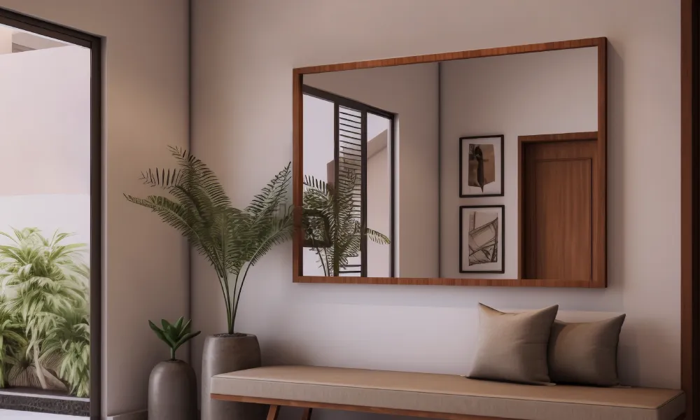 Uma dica para usar espelhos decorativos é posicioná-lo estrategicamente para refletir luz natural ou destacar elementos do ambiente.